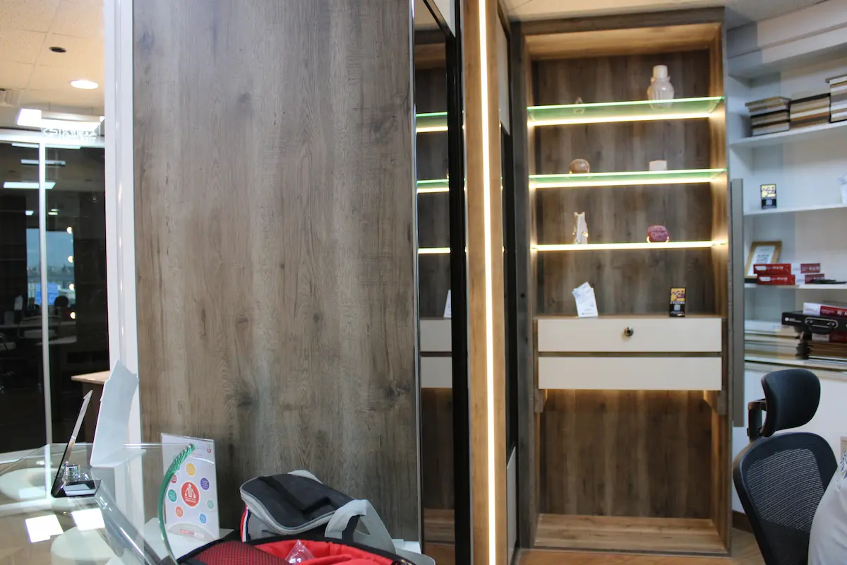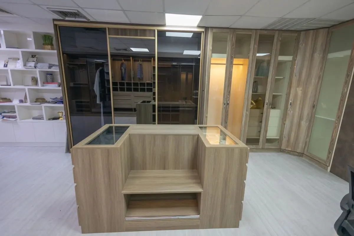 • Wooden Wardrobe with Glass Accents: For a classic-modern feel, these combine transparency with warmth, making them a popular choice among wardrobes in Sharjah options.